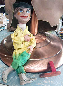 Puppet with newfound ceramic feet, & a wooden one from his past life.