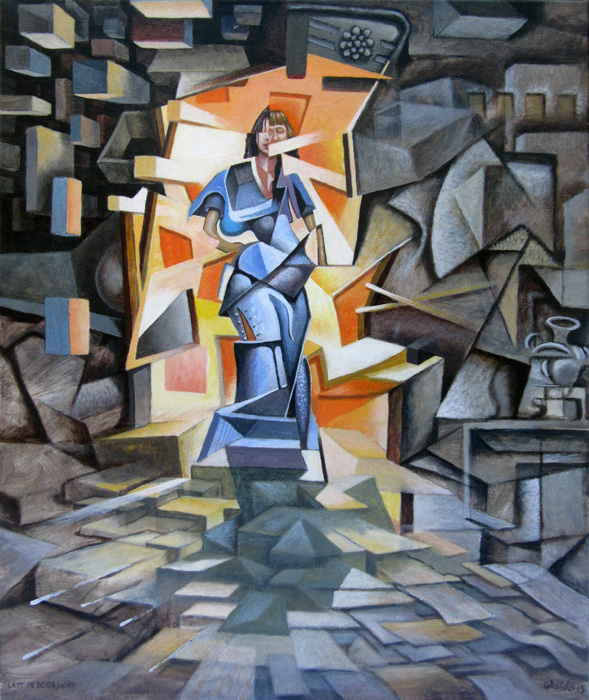 Lady in a Doorway acrylic by Waldo Hartley Waldo Hartley lives on Old South Road, Okato, New Zealand email Waldo at allanphartley @ hotmail.com (remove spaces)