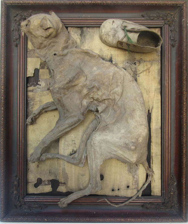 Most usually a dead rat, occasionally a bird, not often a cat.