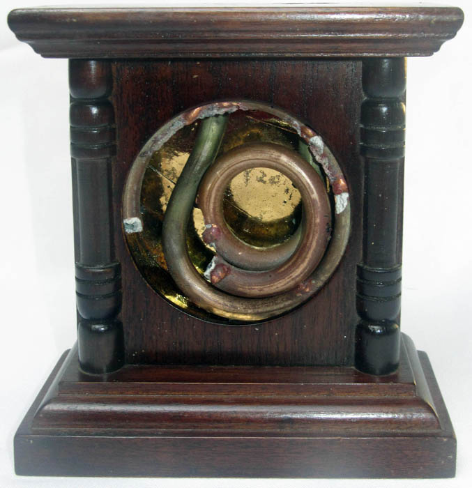 It felt apt to set this exploded heating tube into the case of a mantel clock.