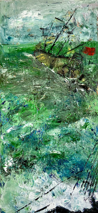 Wild Sea, oil, 1000x510mm, 2019, NFS Tony's studio is in New Plymouth, New Zealand.